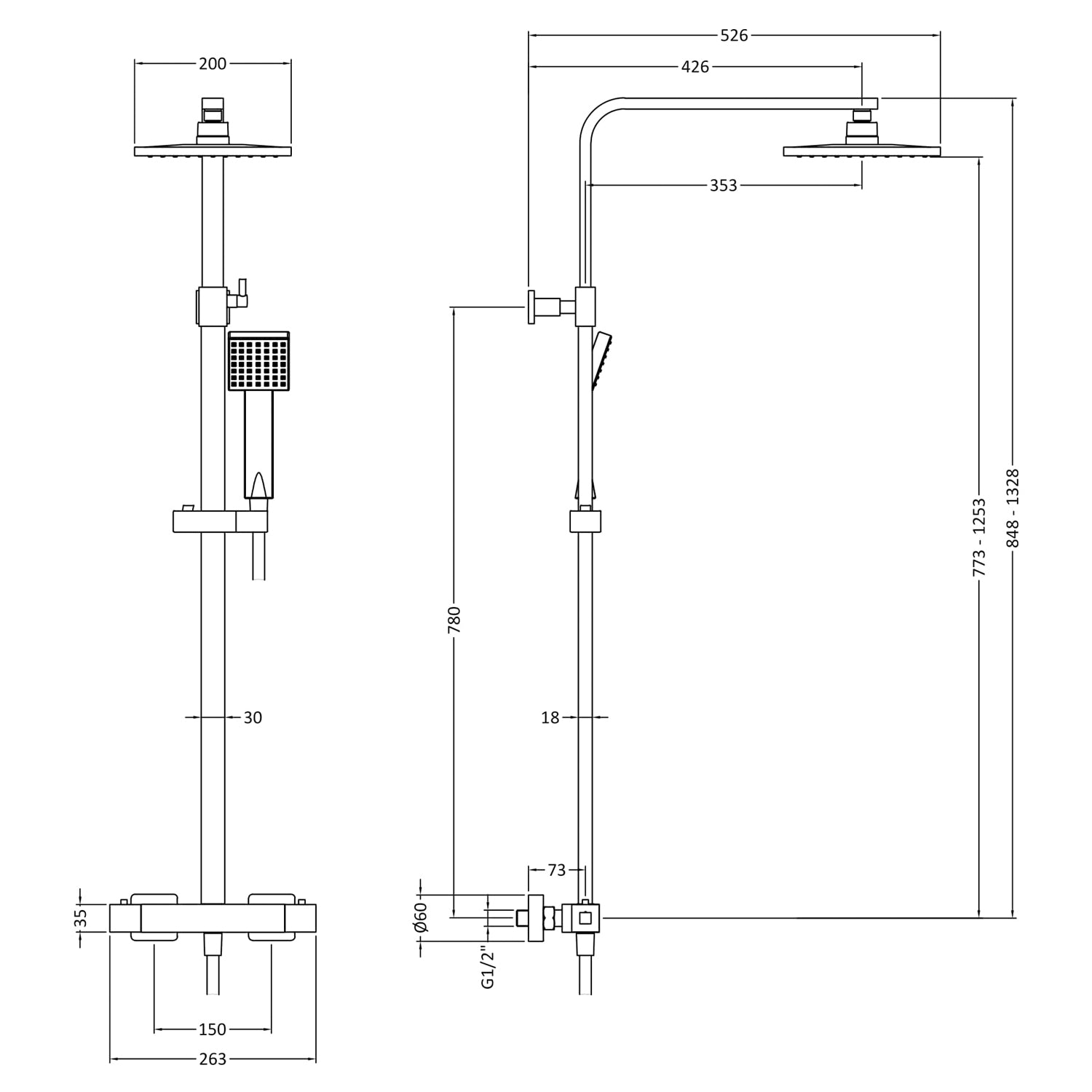 - Comes with Rigid riser kit, fixed shower head and matching handset