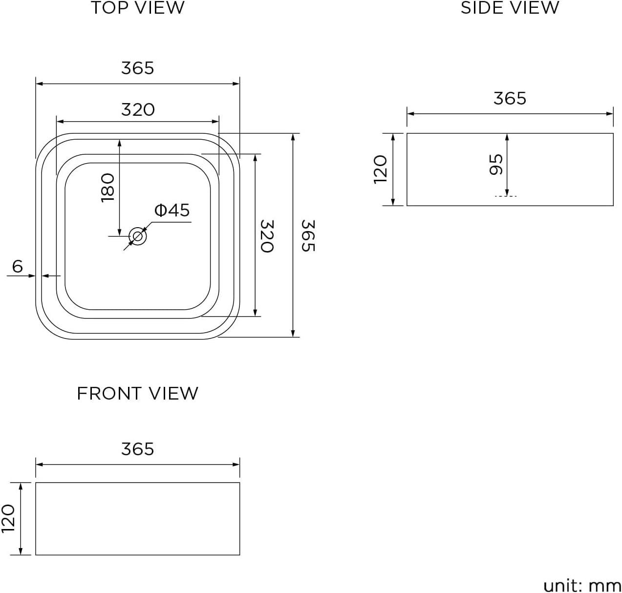 Sophia Soft Square Countertop Basin White 390x390x135mm