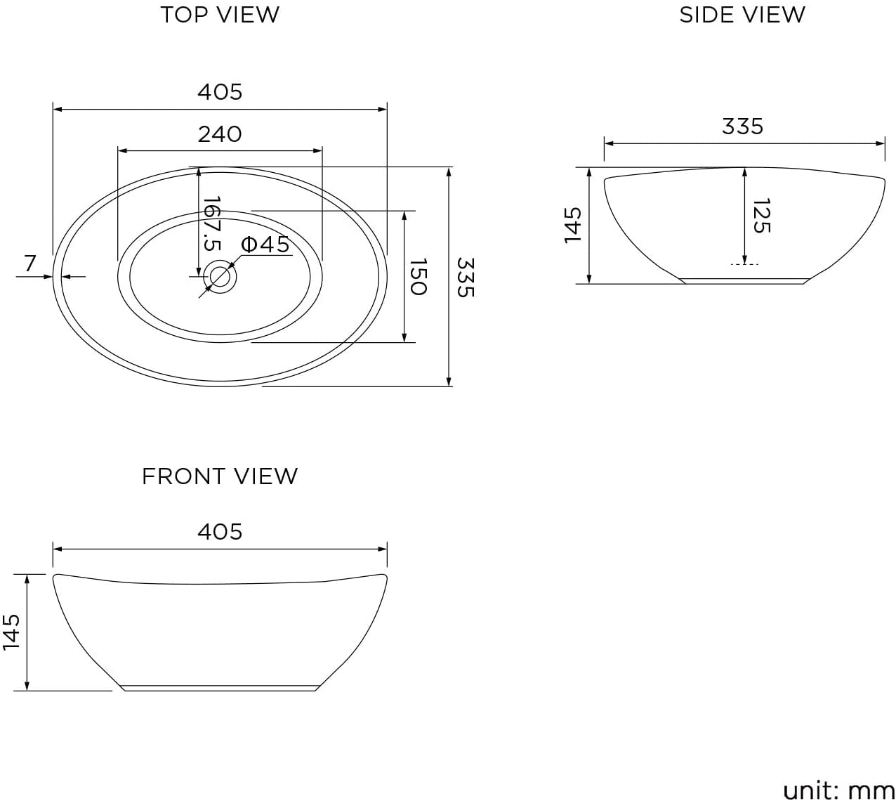 - Shape: Oval